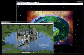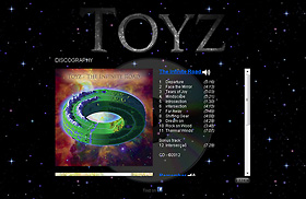 Uitgaande van het ontwerp voor de CD werd er een Toyz-universum ontworpen voor de homepage, waarbij de navigatieknoppen in de vorm van planeten 3-dimensionaal om een centrale zon heen roteren (flashplayer noodzakelijk).